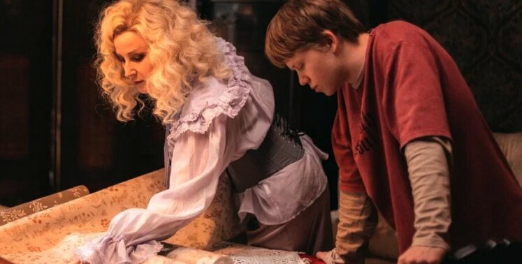 Экранной сестре Антона достался чуть более сдержанный образ, но Марии Лисовой все равно придется провести немало времени в кресле гримера: половину ее лица занимает шрам от ожога — ведь когда-то Мию брат спас от сжигания на костре.
