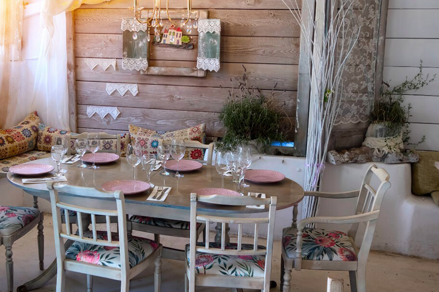 Для стиля прованс характерны обилие как естественного, так и искусственного освещения, пастельные оттенки, винтажные состаренные предметы мебели, натуральные материалы отделки (дерево, камень, керамика).