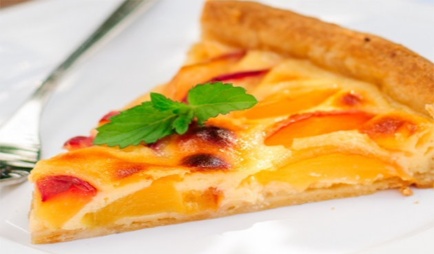 Раскладываем в получившуюся основу из теста часть долек нектарина, заливаем кремом из йогурта и украшаем оставшимся нектарином, вставляя дольки в крем. Выпекаем около 30 минут до застывания крема и золотистого цвета. Даем пирогу остыть — и можно подавать на стол.