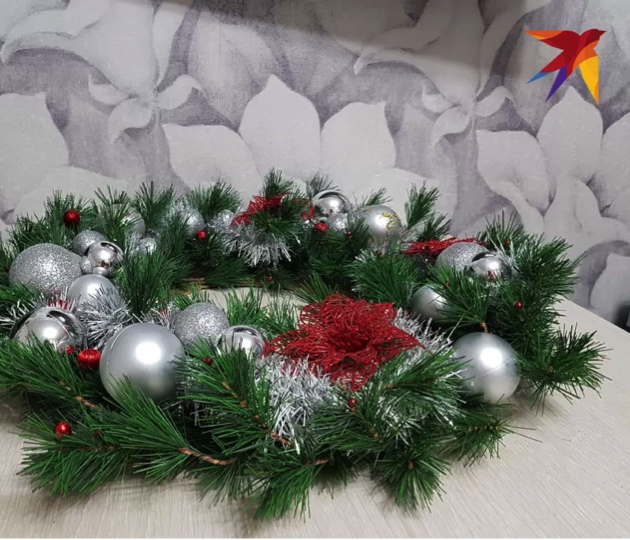 - Можно приобрести искусственную ветку в строительном гипермаркете, стоит она около 600 рублей. Подойдет и настоящая еловая ветвь, но со временем она осыпется. А венок из ненатуральной основы можно использовать не один год.