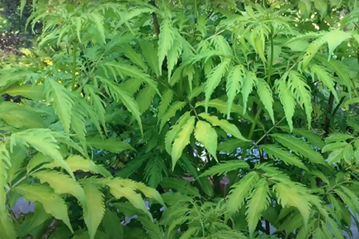 - Tenuifolia – невысокая форма бузины с тонкими ажурными листьями и дуговидными побегами, морозостойкость до -34°С.
