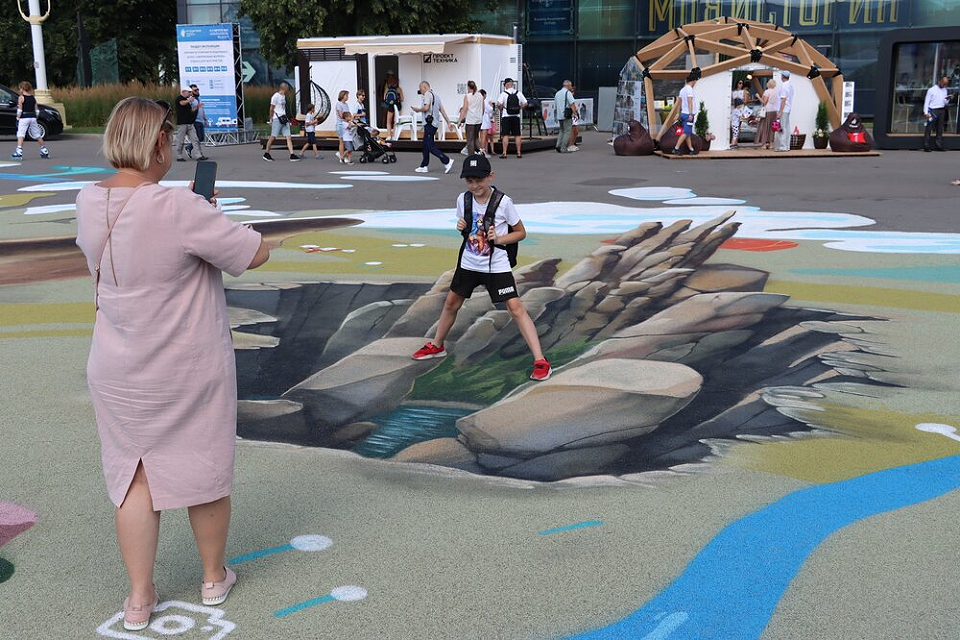 С 22 августа по 11 сентября 2022 года на ВДНХ в Москве проходит фестиваль актуального искусства «Видение». Столичные художники удивляют горожан своими произведениями на асфальте. Главная выставка страны превратилась в дни фестиваля в урбанистическое пространство с десятками трехмерных изображений всех видов и форм.