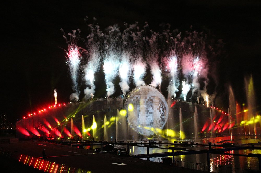 На Гребном канале обычно проходит открытие фестиваля. Представление разворачивалось на огромной водной арене, а над ней возвели специальные конструкции, которые выступили в роли экрана для видеопроекции. Здесь же появились фонтаны и водно-веерные экраны.