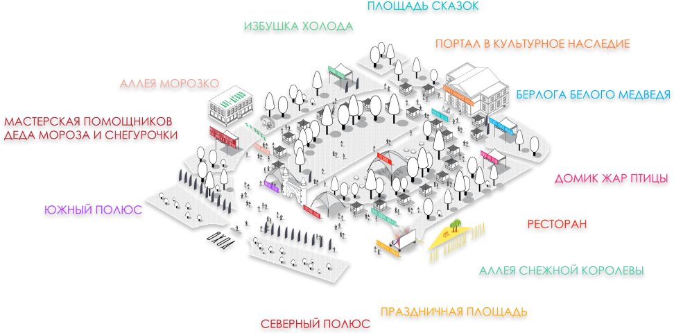 «Мастерская помощников Деда мороза и снегурочки», «Берлога белого медведя»: