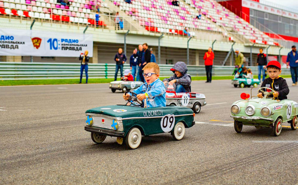 Для детей младше 10 лет устроят заезды на педальных автомобильчиках времён СССР. Гонки будут проходить на настоящей трассе под аплодисменты зрителей. Участие совершенно бесплатно, нужно лишь заранее зарегистрироваться возле аттракциона «Мечта детства» и пройти квалификацию.