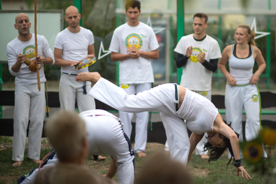 Отдельное внимание в программе уделено капоэйре — бразильскому боевому искусству с элементами танца. Занятия и показательные выступления пройдут на площадке перед Музеем кино.