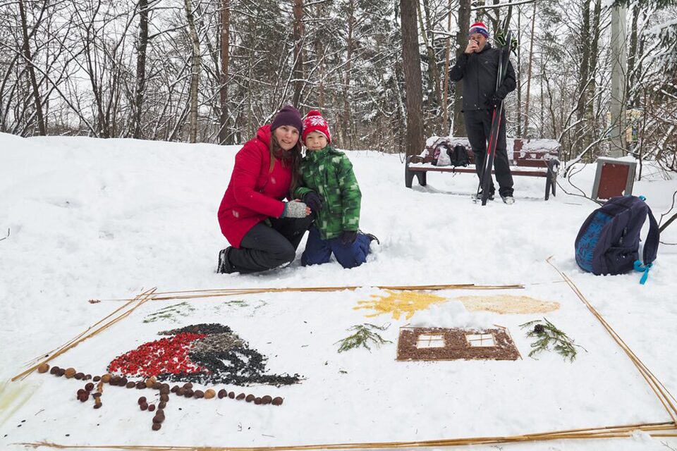 Участникам предстоит подключить всю свою фантазию и создать необычные картины прямо на снежном покрове. В качестве материала можно использовать только природные органические вещества: опилки, найденные под снегом веточки и шишки, сухую траву, щепу, крупы, сушеные ягоды рябины и боярышника, сушеные яблоки, орехи (кроме миндаля), желуди, несоленые семечки, овсяные хлопья, зерна ячменя и пшеницы, а также злаки и семена диких трав. А вот всевозможные лаки и краски запрещены, так как они могут нанести ущерб природе. Кроме того, рисунок из природных материалов станет настоящим праздничным столом для птиц и белок.