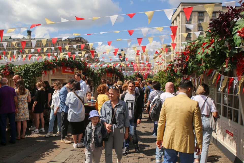 С 3 по 19 октября 2025 года на Манежной площади в Москве проходит гастрономический фестиваль. На площадке представлены уличные блюда, десерты и угощения из разных регионов России и стран юга Европы. Гостей ждут калачи, курники, вафли, драники, морепродукты и блюда на гриле.