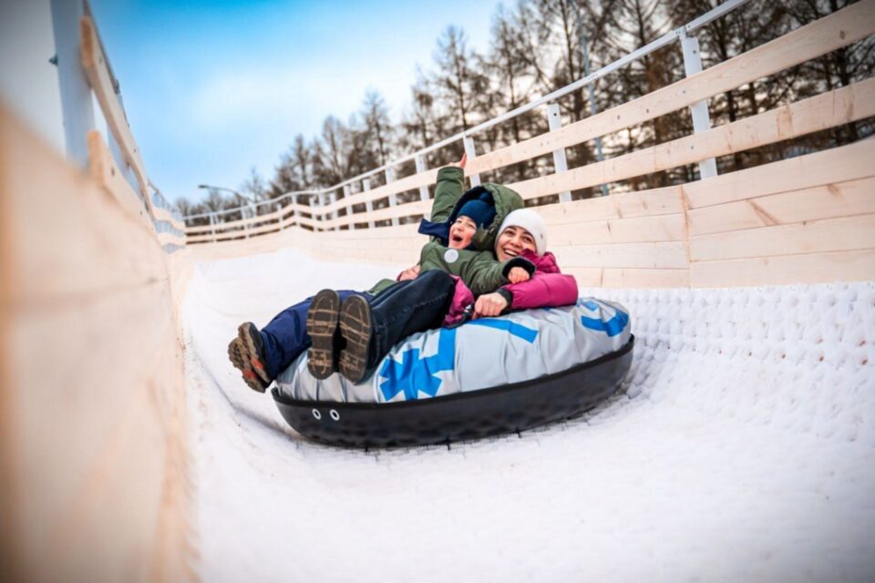 На Центральной площади откроется тюбинговая трасса протяжённостью 115 метров с несколькими спусками для детей и взрослых. Подъём осуществляется с помощью специального приспособления. Условия катания можно увидеть здесь.