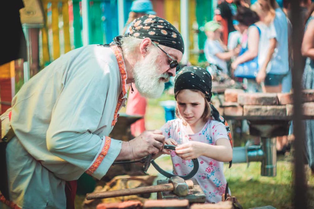 И конечно, из года в год на фестивале разворачивается ярмарка с сувенирами и настоящими произведениями искусства, любовно выкованными мастерами. Некоторые из них настолько замысловаты и трудоемки, что вполне вписались бы в музейную экспозицию. Важное место на фестивале занимает религиозная тематика. Праздник проходит рядом с храмом Святого Великомученика Никиты, и в рамках фестиваля верующие могут зайти в него поклониться мощам и посетить Божественную литургию.