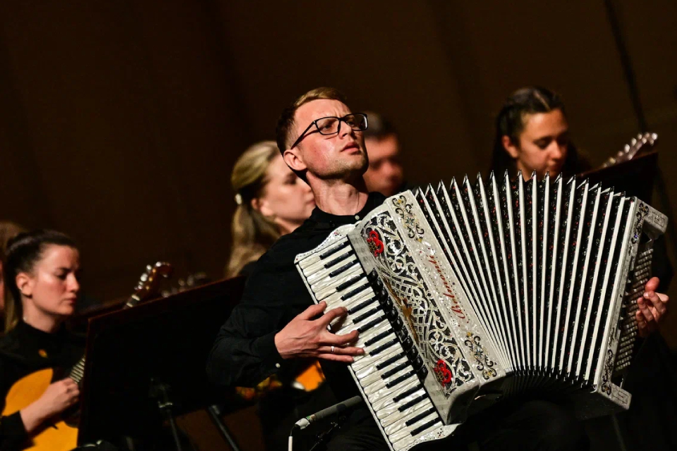 В первом отделении прозвучит музыка Астора Пьяццоллы — выдающегося аргентинского композитора и музыканта, создавшего музыкальный стиль «новое танго». Во втором отделении коллектив исполнит произведение современного французского композитора Сэмюэля Струка — Двойной концерт для виолончели, аккордеона и оркестра «Сны Майи».