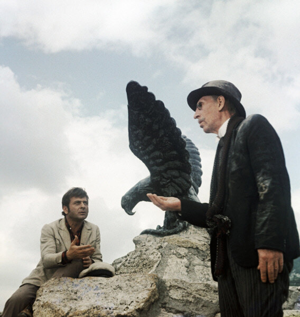 И в результате роль досталась «темной лошадке» — Арчилу Гомиашвили, практически не известному советским кинозрителям. Еще в 60-е он поставил в Грузии спектакль «Похождения Остапа Бендера» по мотивам «Золотого теленка», причем играл в нем множество ролей: и Бендера, и Корейко, и Паниковского, и Балаганова, и даже Зосю. Он гастролировал с ним по всему СССР — и в 1970-м в городе Горьком на спектакль пришел Гайдай. Гомиашвили к тому моменту уже практически не проходил на роль по возрасту: Бендеру в романе примерно 27, а Гомиашвили было 44. Но в личном разговоре с Гайдаем актер смело убавил себе десять лет, и это прокатило. Более того, эти десять лет каким-то чудом «съела» кинопленка: Гомиашвили действительно выглядит на экране максимум 35-летним. (Всего несколько лет спустя он сыграет потерпевшего Нугзара Папишвили в «Мимино», и там уже будет выглядеть на свой реальный возраст; практически невозможно поверить, что перед нами тот же актер, который совсем недавно был Бендером).