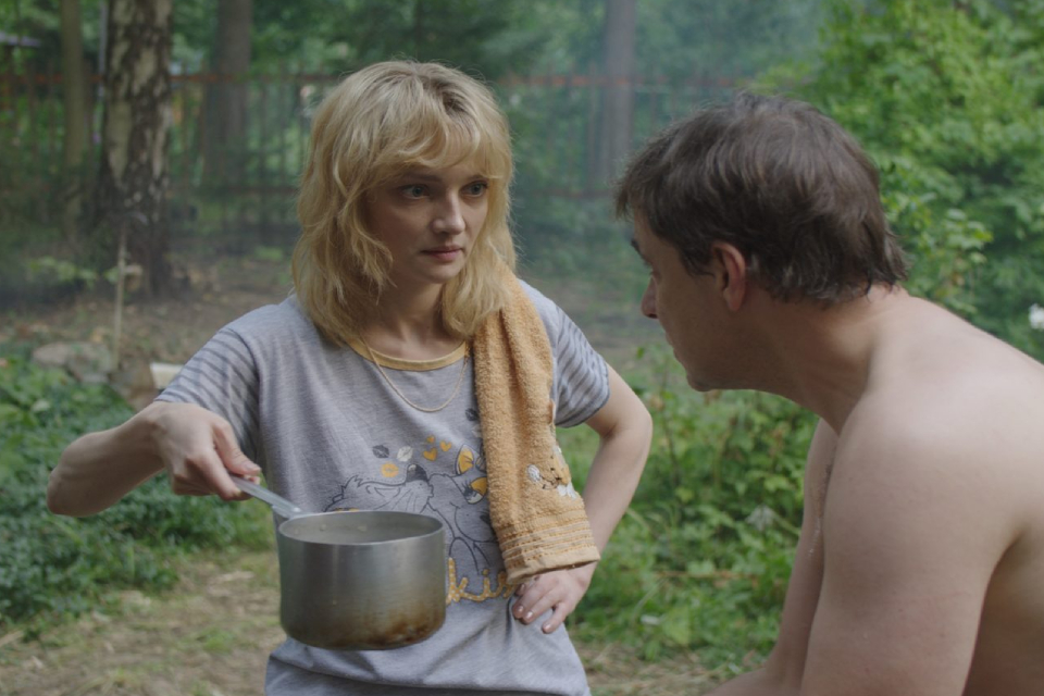 Теперь у них есть скромная цель: пройти через «переходный период» максимально безболезненно. Они торчат на даче, куда переехали из Москвы, доят козу, переживают, что нет нормального туалета, пьют водку с соседом (Александр Робак) и его женой (Александра Ребенок), бормочут «Много грибов — к войне», обсуждают Майкла Джексона, который 15 сентября должен дать концерт в Москве. Когда в октябре полыхнет, в них проснутся гражданские чувства, и Виктор отправится штурмовать Останкино, а Лена пойдет к «демократам» на Тверскую.