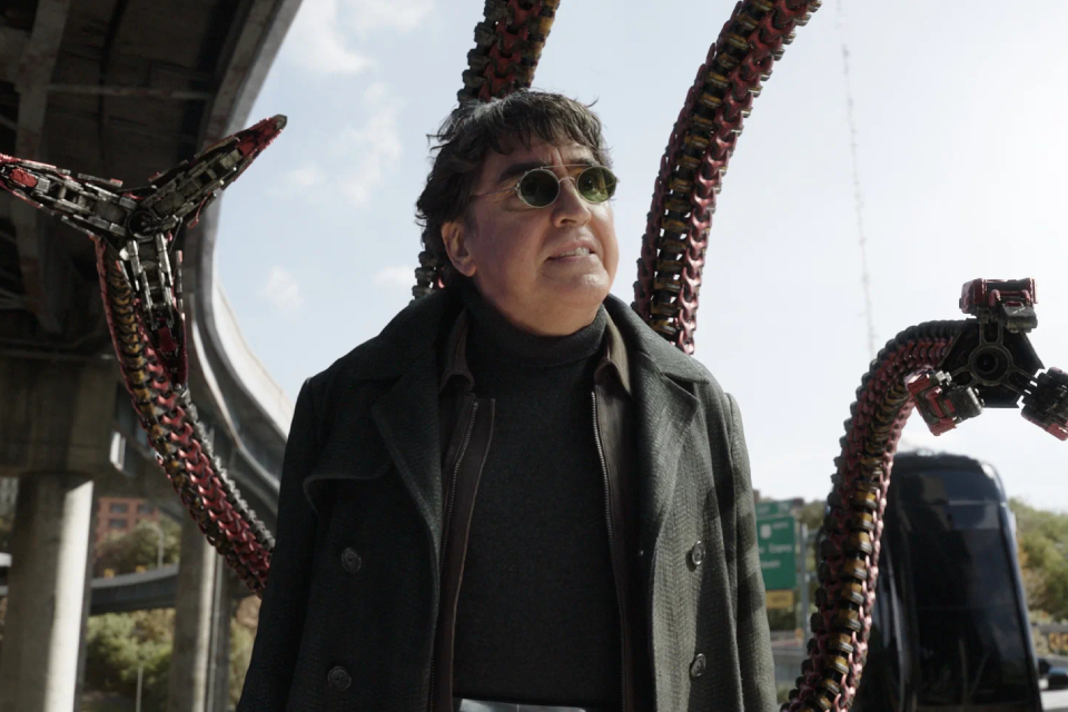 Это третий сольный «Человек-паук» с Томом Холландом в роли Паркера. А вообще, если считать фильмы с Тоби Магуайером (три) и Эндрю Гарфилдом (два) — это восьмой «ЧП». Киносериалу в следующем году будет двадцать лет, и, не дожидаясь юбилея, Marvel решила его отметить новогодним капустником, в котором все наконец перемешано и закрючковано. Доктор Осьминог (Альфред Молина) цапает своими хищными щупальцами Электро (Джейми Фокс — к счастью, он тут уже не синий, а логичным образом черный), Зеленый Гоблин (Уиллем Дефо) изливает душу паркеровской тетушке (Мариса Томей), а Стрэндж (Бенедикт Камбербэтч) собачится с Ящером (Рис Иванс).