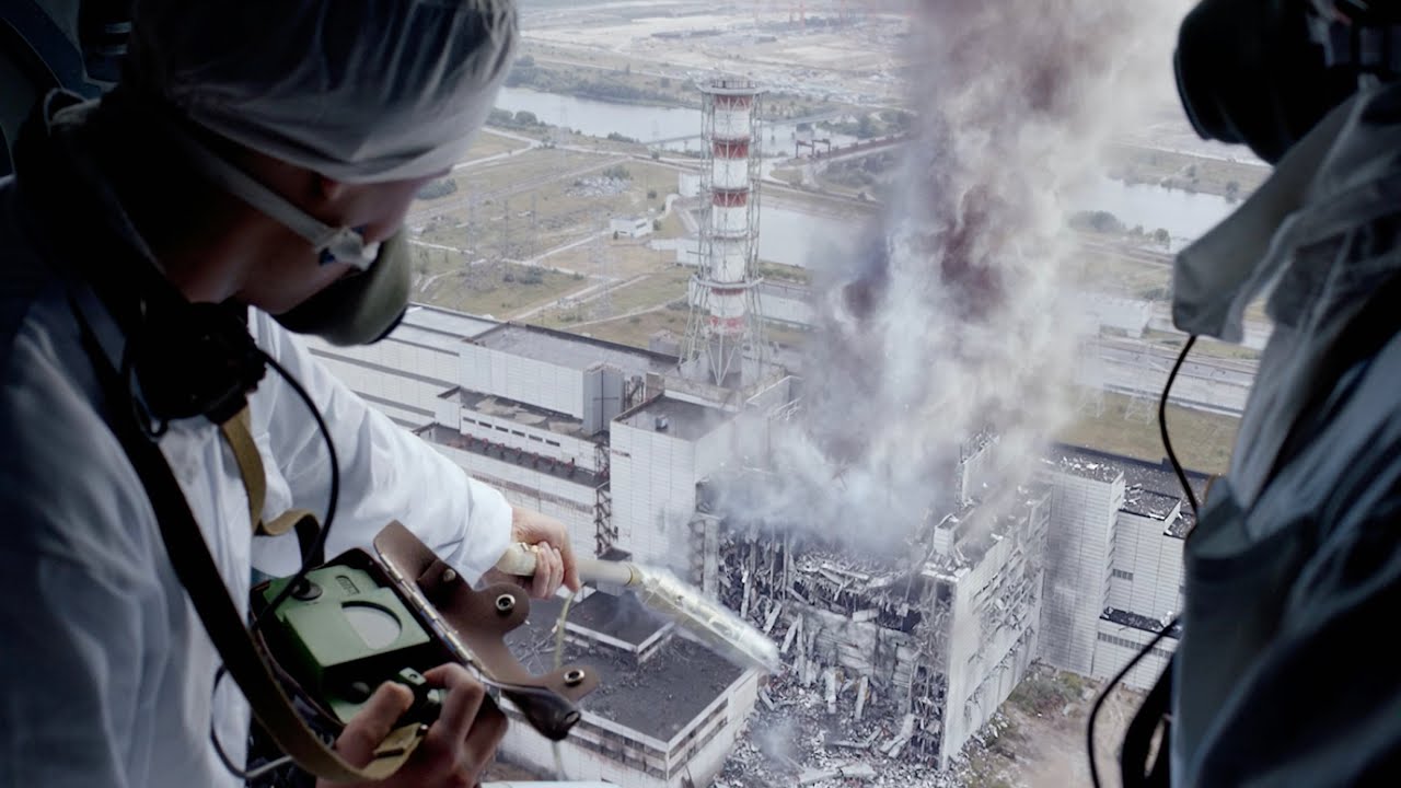 Правда, Чернобыль — не то, чтобы очень зрелищная катастрофа. Не такая, как воображаемый взрыв Йеллоустонского супервулкана в «2012», окончательный разлом «Разлома Сан-Андреас» или гибель «Титаника» (а именно с «Титаником» все первым делом начнут сравнивать эту картину). Ну правда: в одном случае — гигантский красавец-корабль сначала плывет среди дельфинчиков, а потом роскошно вздымается в волнах и разламывается пополам; люди орут, падают за борт, завороженный зритель открывает рот. В другом — унылое здание АЭС, расплавленный битум, грязь, дым, обломки, мутная вода. И радиация — невидимая, и потому не очень впечатляющая опасность. Максимум, что можно из нее выжать в кинематографическом плане — грозное сияние над реактором, которое возникает благодаря «эффекту Вавилова-Черенкова».