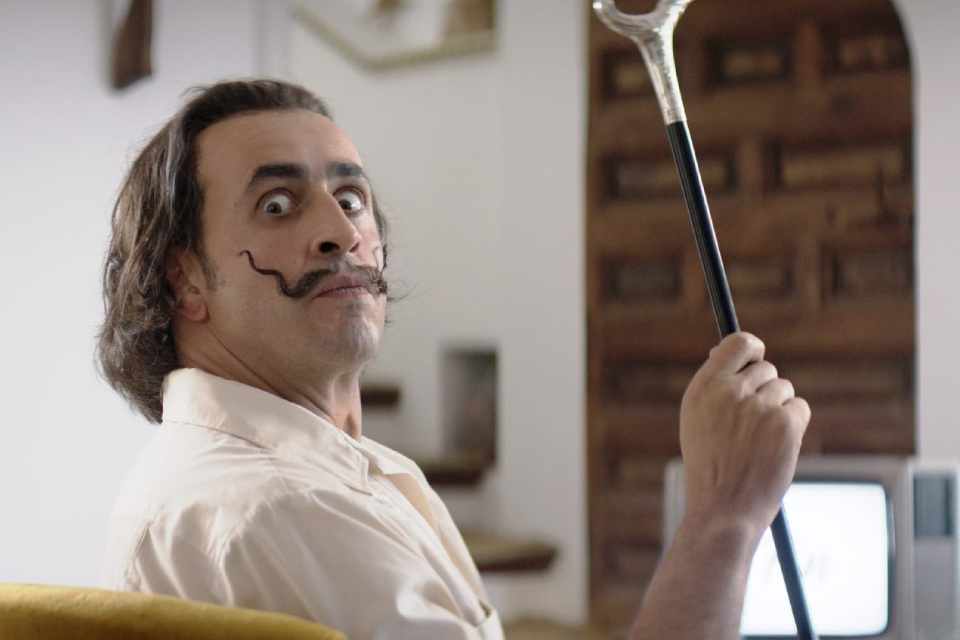Дальше следует одна из самых смешных визуальных шуток, что я видел в кино за много лет (кому-то ее одной будет достаточно, чтобы полюбить режиссера Квентина Дюпье на всю жизнь); не стану ничего пересказывать, чтобы не портить впечатление. Но, в общем, в конце концов начинается интервью, — чтобы тут же закончиться: маэстро неинтересно общаться с какой-то маленькой бездарной серой мышью, приготовившейся записывать ответы в блокнотик, он готов говорить только на камеру. Жюдит же не собирается сдаваться: в следующий раз она придет к художнику с оператором. Но все опять пойдет не так. До такой степени, что Дали окажется пятью разными людьми (первый — нервный, второй — молодой, третий – в берете, четвертый — потертый, пятый — помятый). Один из этих Дали отправится на скучнейший ужин к какому-то своему работнику, там будет священник, который примется пересказывать художнику свой сон, будто бы невероятно интересный и дико вдохновляющий на творчество; в частности, в этом сне Дали будет ехать в машине на дикой скорости, а рядом будет бежать Жюдит и умолять еще об одной встрече. «Я все понимаю, — задумчиво скажет художник, — но залезть в чужой сон, чтобы добиться у меня интервью?»