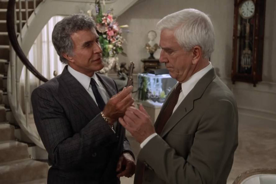 На самом деле «Голый пистолет» сначала был телесериалом, который выходил в совсем далеком 1982-м — его прикрыли после шести эпизодов, и это сейчас считается одним из самых глупых решений в истории канала ABC. Через несколько лет Фрэнк Дребин расцвел на большом экране, и вместе с ним расцвел Лесли Нильсен — в прошлом серьезный актер, на пороге 60-летия внезапно переквалифицировавшийся в комика. «Я знаю, что меня называют Лоуренсом Оливье кинопародий. Надеюсь, Оливье когда-нибудь назовут Лесли Нильсеном шекспировских постановок!» — говорил он незадолго до смерти, настигшей его в 2010 году, в возрасте 84 лет.