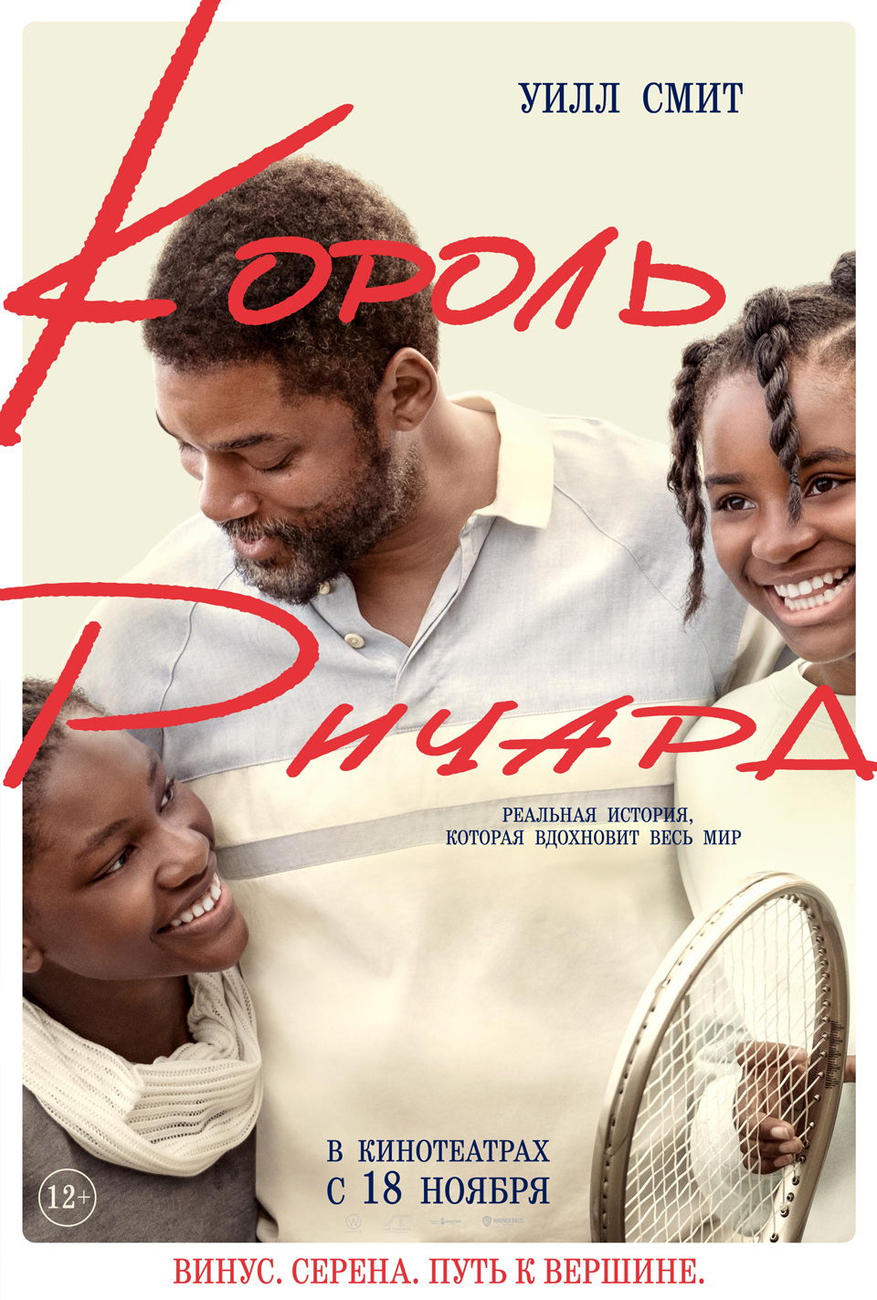 И ничего этого не было бы, если бы не их отец, скромный охранник Ричард Уильямс (Уилл Смит). Еще до рождения девочек он решил, что те станут теннисистками, и составил подробный 78-страничный план, как им добиться величия. Он говорит о себе: «Я в бизнесе по выращиванию чемпионов!», заставляет девочек тренироваться буквально до упаду (бдительная соседка в какой-то момент даже стучит на него в органы опеки), и отчаянно ищет профессионального тренера. Разумеется, большая часть профессионалов только хмыкает («Вы хотите сказать, в вашем доме растут два Моцарта?»), но в какой-то момент ему везет. Теперь у девочек (точнее, пока только у старшей, Винус) один тренер с Питом Сампрасом, и она выигрывает один юниорское соревнование за другим. Но потом отец говорит всей этой юниорской ерунде свое решительное «Нет»: детей там только мучают, они выгорают и срываются. Его дочки будут получать нормальное образование и оставаться нормальными детьми – только параллельно тренироваться, тренироваться и тренироваться, пока сразу не выйдут на профессиональный корт. Таков его план. Все вокруг только крутят пальцами у висков – но мы ведь знаем, кто в итоге оказался прав.