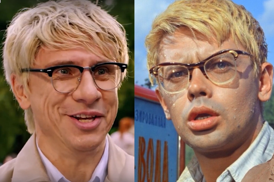 Дальше всё закручивается: пара попадает в офисный вихрь «Служебного романа», с его бюрократией и флиртом, а потом — в горы Кавказа, где эхом отзываются мотивы «Кавказской пленницы». Но сценарий не останавливается на советской классике: герои уносятся в мир глобального кино, включая отсылки к «Мэри Поппинс» и даже «Электронику».
