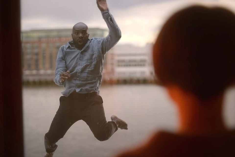 Через несколько минут все заканчивается на тротуаре под домом – оторопевшая героиня смотрит на труп мужа, только что пролетевшего мимо окна и мимо нее, успевшего взглянуть ей в глаза: его рука распорота оградой, ноги сломаны и вывернуты.