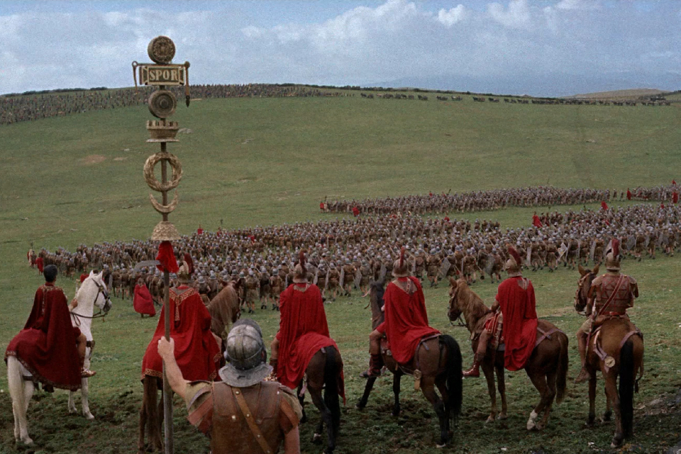 Впечатляет уже то, что сама съемочная группа к окончанию этого кинопроекта разрослась до 10 тысяч человек. На постановку масштабных боевых сцен потребовалось полтора месяца, а задействованы в них были примерно 8,5 тысяч человек. Статисты воссоздавали сражения между римскими войсками и армией Спартака.