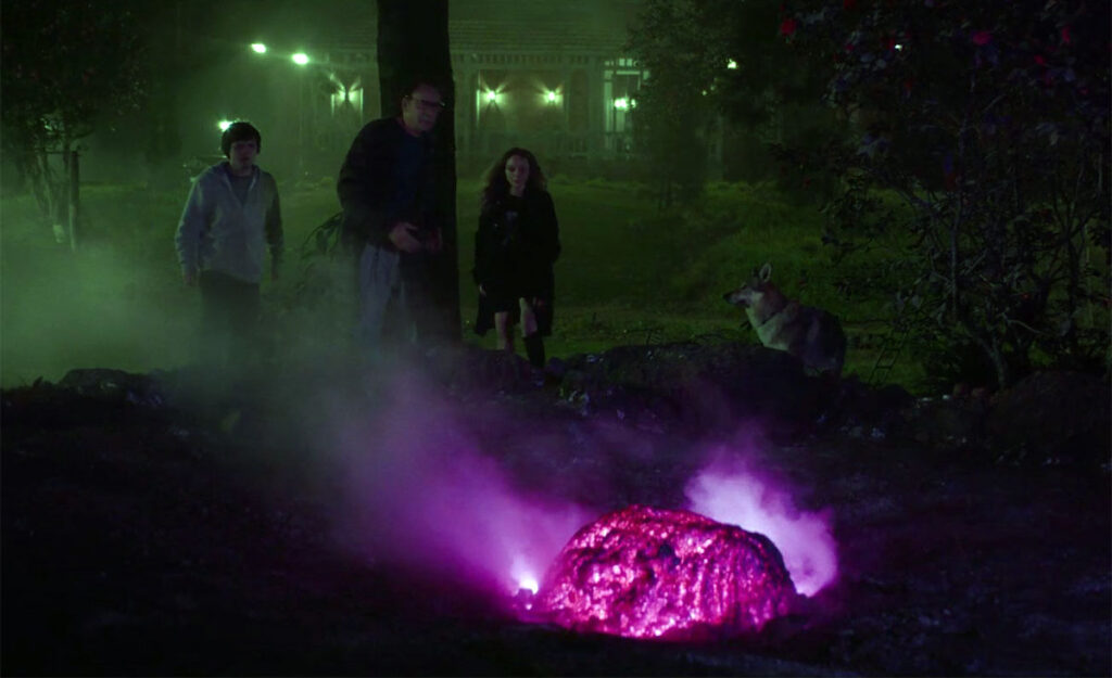 Сюжет: Тихая фермерская жизнь Гарднеров превращается в фантастический кошмар, когда во двор их дома падает небольшой метеорит, оказывающий инопланетное влияние на всех, кто находится рядом. На следующий же день он исчезает, но теперь вокруг места падения разрастаются необычные цветы, а телевидение и мобильная связь работают с помехами. Гарднеры и предположить не могут, что вскоре их привычный мир навсегда изменится. И пока нет ответов на вопросы, откуда взялось это неземное тело и какие опасности в нем скрыты. Одно ясно точно — хорошего не жди.