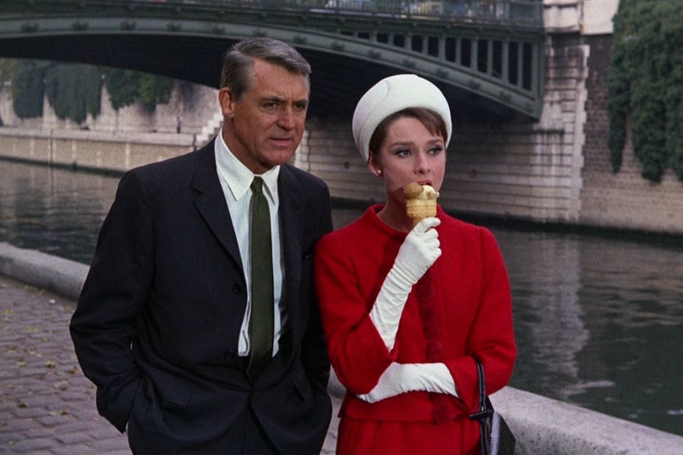 Интересный факт: Когда героиня Одри Хепберн курит в пустой квартире, туда заходит персонаж Кэри Гранта. В этот момент кончики ушей актера прилеплены к голове клейкой лентой — иначе из-за стоящих сзади софитов они пылали красным.
