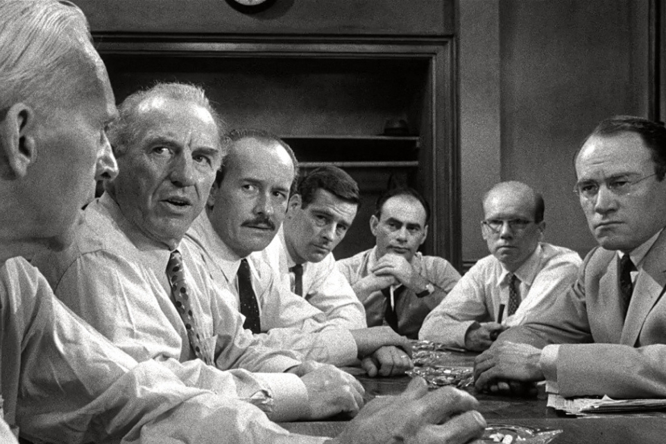 Сюжет: Продолжительное судебное слушание закончилось. Все улики указывают на то, что малолетний негодяй без жалости убил родного отца. Присяжным предстоит вынести решение. Но о чем здесь думать? Все же очевидно. Однако один из них сомневается в виновности парнишки. Приговор должен быть единогласным и остальным присяжным нужно либо убедить несогласного, либо принять его сторону. Другого не дано.