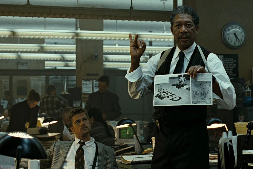 Сюжет: Пожилой и опытный детектив Сомерсет дорабатывает неделю перед своей отставкой из полиции. Его сменяет молодой и весьма амбициозный детектив Миллз. «Старичок» должен ввести «новичка» в курс всех дел. Сомерсет надеется, что этим курсом молодого бойца все и закончится, но его надежды рушатся в первый же день. В городе происходит необычайно изощренное убийство. Детективам предстоит расследовать его вместе.