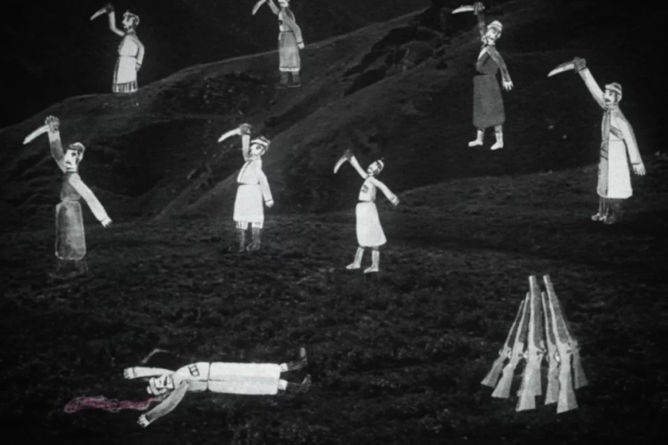 Разумеется, «архивный» фильм «На Кавказе» от начала до конца снят самим Федорченко (он обожает эти игры еще со своей дебютной работы «Первые на Луне» — якобы документальной, полной «сенсационной хроники» картины о том, как советские космонавты добрались до спутника Земли в 1938 году). В своих девяти новеллах о Кавказе он с оглушительной легкостью и свободой перемешивает реальность и вымысел. Совершенно правдивая история живописца Петра Захарова-Чеченца, приятеля Лермонтова, раскрашивается безумным сюжетом о его художественной «дуэли» с поэтом, в ходе которой они писали портреты друг друга. Бегает Пушкин в костюме «красного дьявола». Выясняется, что Махатма Ганди (через Льва Толстого) был вдохновлен идеями суфия Кунта-Хаджи Кишиева. А еще на Кавказе водятся гигантские змеи длиной в десятки метров — и они ка-ак прыгнут!.. Реальные обычаи кавказских народов, подлинные исторические факты, ставшие легендами, комбинируются с откровенно абсурдистскими и комическими деталями — а потом выясняется, что самое абсурдное-то как раз и есть чистейшая правда, а мнимые шутки сочатся настоящей кровью. Понять, где Федорченко иронизирует, а где он серьезен, порою почти невозможно — и оторваться от экрана тоже.