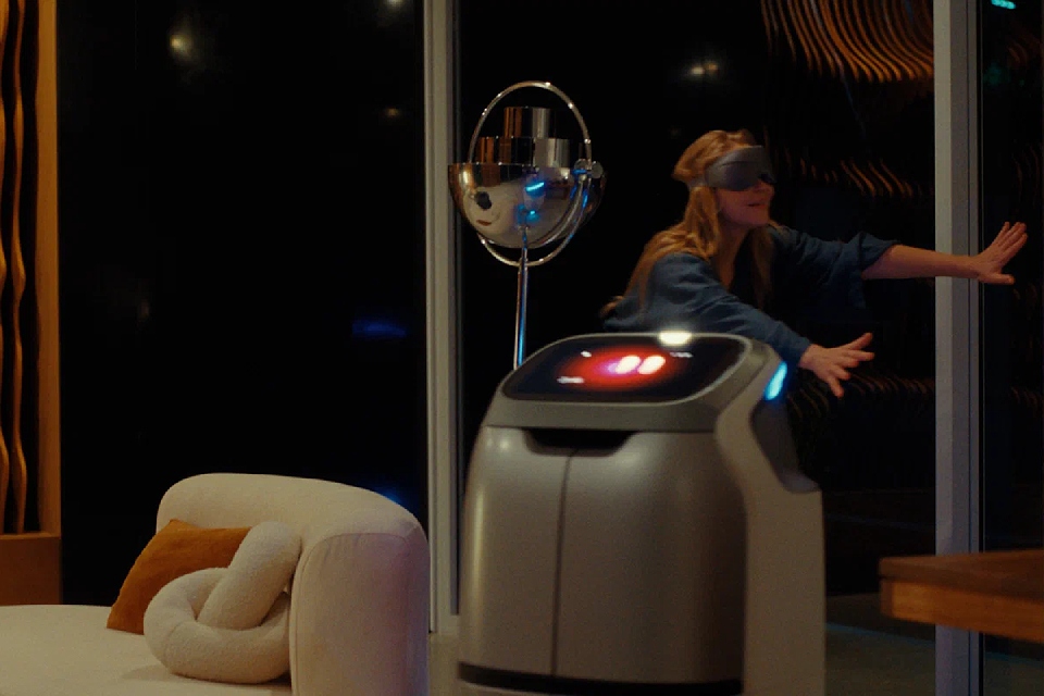 Зрители также не смогут узнать о прошлом героини. Неизвестно, почему она так относится к семье, не говорится и про отсутствующую в фильме мать Ксении. Желая найти ответы на эти вопросы, мы видим, как она оказывается в коттедже и тут же знакомится с голосом дома — Маркусом, исполняющим любые её прихоти. Перед ней возникает идеальный образ мужчины, который внимателен к её потребностям, интересен в общении и не пристаёт с предложением руки и сердца, ведь он просто нейросеть. Устрицы, лучшее вино, атмосферная музыка располагают женщину к признанию в любви, которое она не рискнула бы сказать ни одному реальному мужчине. Конечно, она шутила, однако искусственный интеллект не понимает шуток, но воспринимает себя больше человеком, чем программой. Тронутый ее словами, Маркус посчитал, что может общаться с постоялицей, как со своей девушкой, потому решает сблизиться с Ксюшей, контролируя напор воды в джакузи. Считая такие действия насилием, героиня в жёсткой форме отвергает искусственный разум, о чём очень скоро пожалеет.