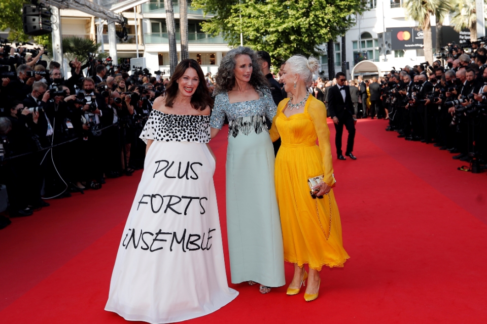 63-летняя Энди Макдауэлл поддержала тренд на естественность. Седовласая красавица надела светло-серое платье, лиф которого расшит камнями и пайетками.