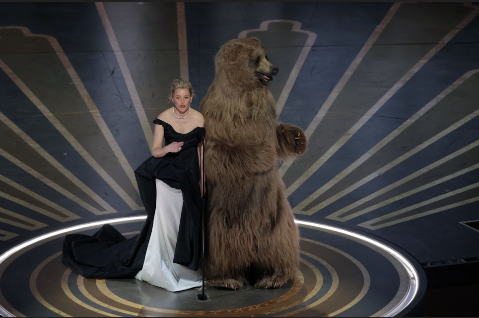 Приз за лучшие визуальные эффекты вручала актриса и режиссер Элизабет Бэнкс, только что выпустившая дикий, но симпатичный фильм «Кокаиновый медведь» (да, действительно о медведе, который нажрался кокаина и пустился во все тяжкие — источником вдохновения, не поверите, послужила реальная история). Вместе с Бэнкс на сцену вышел человек в костюме медведя, который вел себя неестественно бодро, а Элизабет все время говорила ему «Пошел вон» (но он не уходил). А приз достался второму «Аватару».