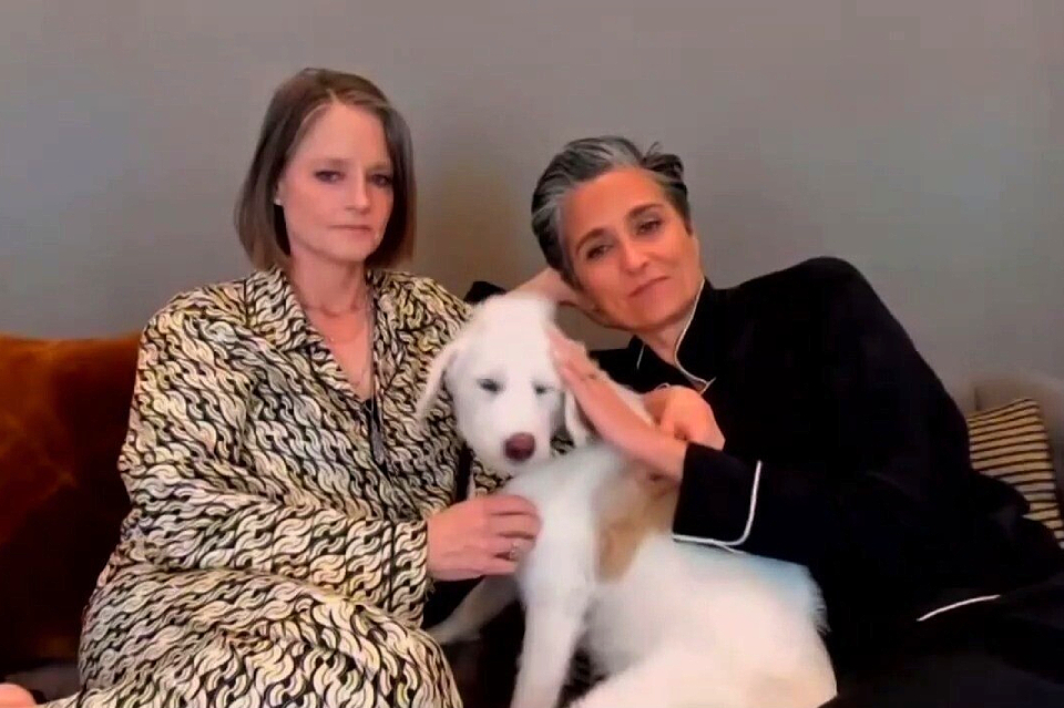 А вот Джоди Фостер вместе с женой Александрой Хедисон не стала заморачиваться и приняла награду за Лучшую женскую роль второго плана в пижаме и с собакой на коленях.