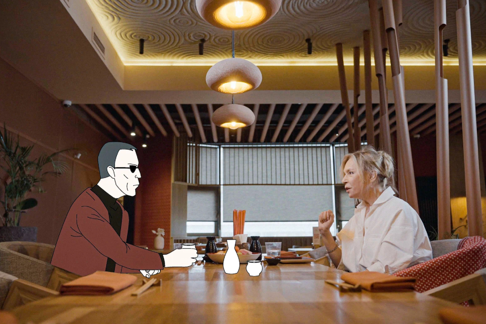 Привлечь к рассказу журналистку Алену Долецкую, когда-то присутствовавшую на интервью Пелевина для журнала Vogue (это знаменитое интервью в японском ресторане, на котором прозаик с рекордной скоростью выкушал несколько графинов саке и понесся во все тяжкие, брала Карина Добротворская, но о ней в фильме почему-то ни слова). Ну, и снабдить рассказ о таинственном писателе развеселой анимацией и компьютерной графикой.