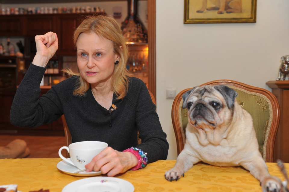 У Дарьи Аркадьевны дом полон всяких вещей с изображением любимой породы собак – статуэтки, картины, мягкие игрушки, подушки, сумки. Мопсы всегда украшают обложки ее детективных романов и детских книг.