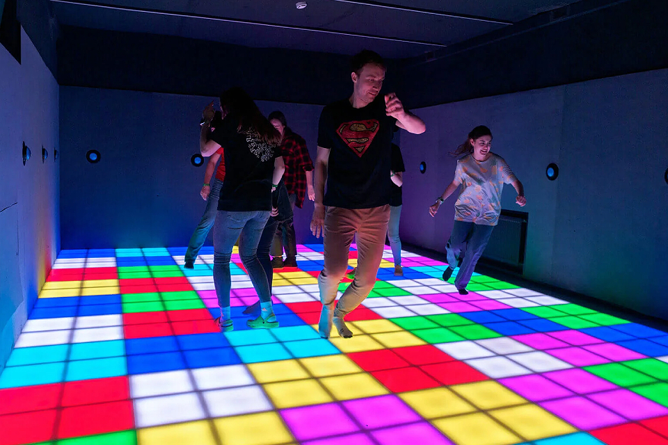 Гостям предлагают больше 100 различных интерактивных игр: от «Пол — это лава» и «Классиков» до «Море волнуется». Они будут интересны посетителям разных возрастов — от 3 до 70 лет. А еще можно подключиться к игре с помощью джойстика прямо из лаундж-зоны и соревноваться с игроками на поле.