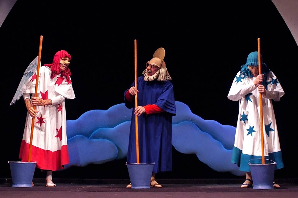 Спектакль «Божественная комедия» не имеет никакого отношения к великому произведению Данте Алигьери. Благодаря актуальным темам, показанным с юмором, отлично воспринимается как подростками, так и их родителями. Это озорной и остроумный пересказ библейской истории о сотворении мира, которую написал драматург Исидор Шток. В центре спектакля – история человеческого грехопадения. Создал Бог Адама и Еву, поселил их в Раю. Хорошо жилось им в Раю – и красиво, и тепло, и сытно. Одно плохо – скучно. Съели Адам и Ева запретное яблоко и были изгнаны из Рая.