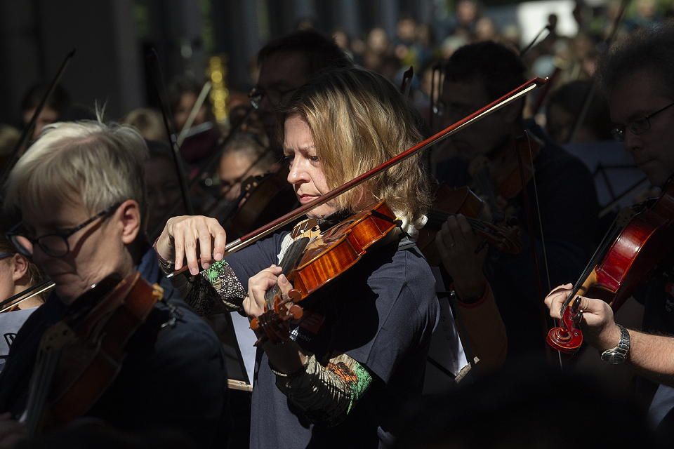 Для простоты восприятия создатели решили пойти нестандартным путем и превратили музыкантов оркестра в актеров на сцене: они в масках животных из стада пионера Пети «пасутся» на полянке со скрипками и гобоями. Тут же летает птичка с флейтой, а Волк рассекает на мотоцикле с тремя валторнами.