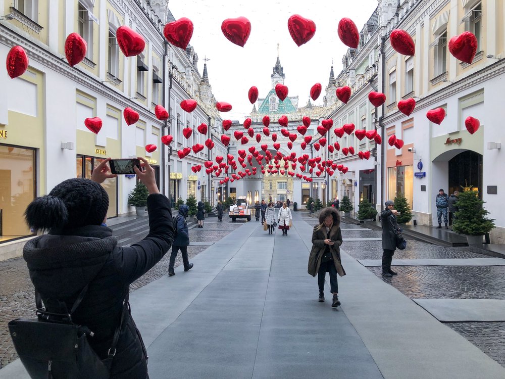 К выходным улицы столицы преображаются к самому милому празднику года. Например, вдоль Третьяковского проезда растянулись импровизированные гирлянды в виде больших красных сердец. Поэтому, если вы собираетесь гулять на выходных в центре, советуем, заглянуть на эту улицу и сделать парочку чудесных фото с любимыми. А потом выбирайте, куда отправиться — различные площадки столицы подготовили программы по случаю Дня Святого Валентина.
