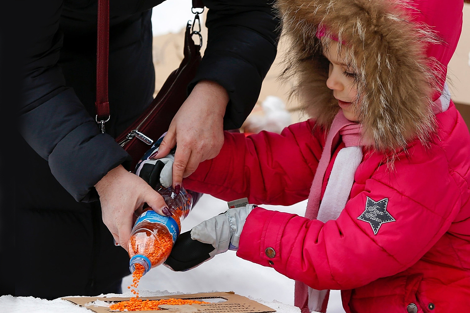 Важно, что для участия можно использовать лишь природные материалы – веточки и шишки, сухую траву и щепки, крупы и ягоды, орехи и семечки и т.д. Такой рисунок не только не навредит природе, но и станет праздничным столом для белок и птиц.