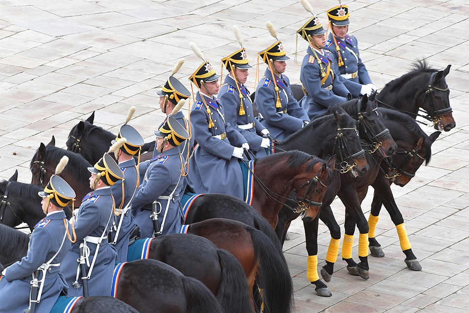Каждый год с апреля по октябрь на Соборной площади Московского Кремля можно наблюдать красивейшую церемонию. В нынешнем виде ее восстановили в 2004-м году. На площади 36 солдат и 8 человек в знаменной группе. А еще появляются 12 всадников – все они служащие Кавалерийского почетного эскорта. Все участники церемониала и конники, и воины пешего караула одеты в форму образца 1812 года. Они показывают эффектные построения и приемы с оружием. Не менее ярко выглядят и всадники. Они демонстрируют десятки групповых фигур, в том числе конную карусель – целую серию сложных номеров-перестроений. Каждый сезон зрителей радуют новыми необычными фигурами. Самое время оценить армейское мастерство!