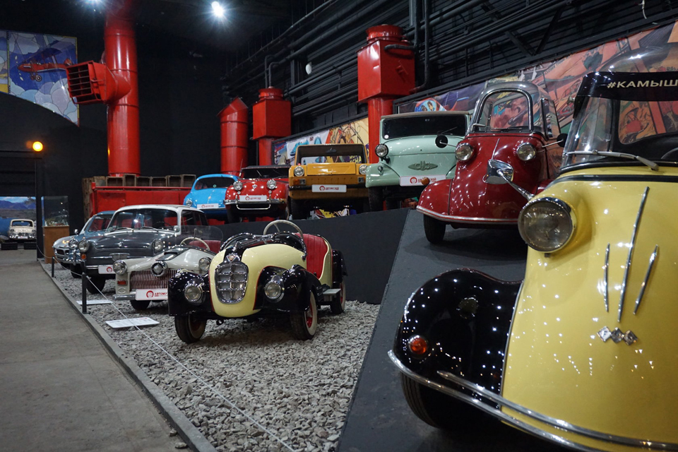 Маленькие авто неизменно вызывают умиление. Музей «Моторы Октября» приглашает посмотреть на таких милых малышей — микрокары, бабблкары, кабинроллеры. Особенно много таких машинок было в послевоенные годы. В экспозицию включены варианты Мессершмитта (да, послевоенный «Мессер» — это не самолёт, а мотоколяска, сделанная по-авиационному), включая открытый и сверхмощный четырёхколёсный (обычно они имели по три колеса), испанский Бискутер. В спортивном стиле, а также немецкий Фульдамобиль и немецко-итальянские NSU Prinz и FIAT Panoramica.