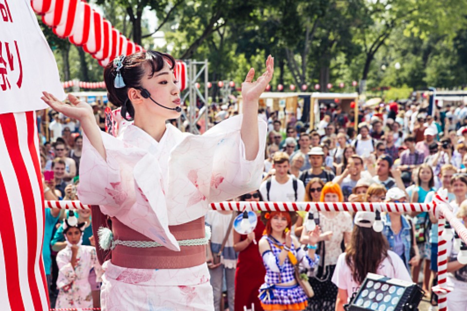 В 14.00 пройдет прямая трансляция из Токио концерта группы Aun J Classic Orchestra. Кроме того, в этот день, в 13.10, запланирован финал Всероссийский конкурсов косплея (так называется хобби, участники которого создают образы персонажей любимых фильмов, сериалов, комиксов), конкурс караоке (12.10) и дефиле лолит (12.40).