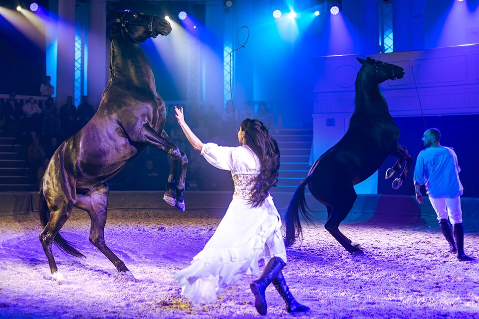 В Центре национальных конных традиций зрители увидят уникальные номера , которые сплетены из виртуозной работы с лошадью, сложнейших трюков и искусства.
