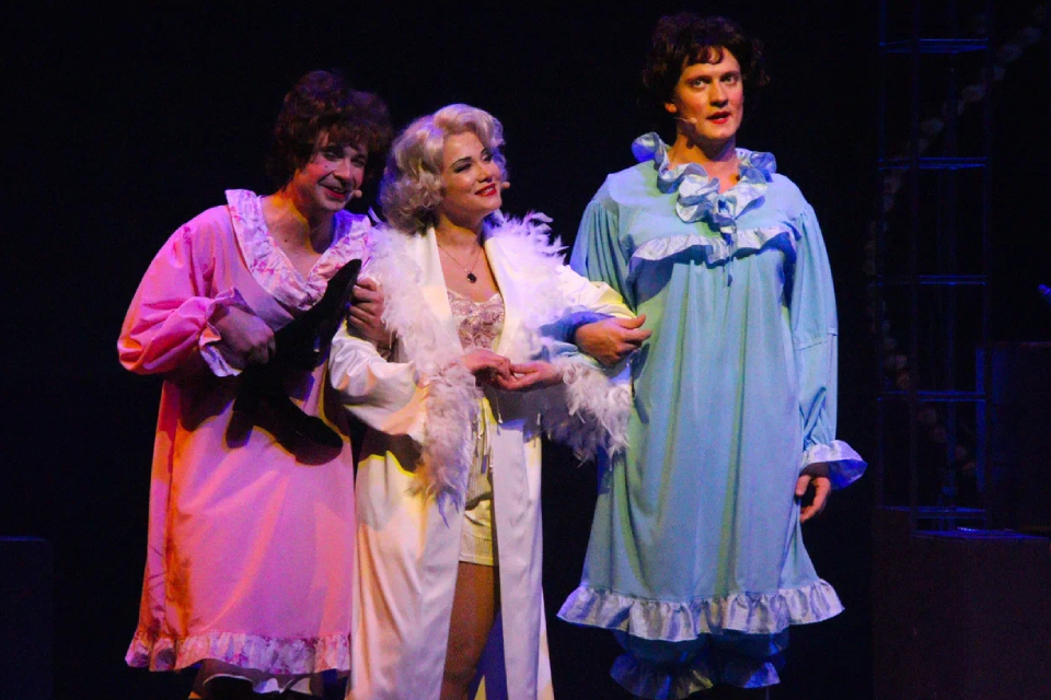 Яркая постановка об опасном приключении двух музыкантов. Парни оказываются в составе женского джазового оркестра: чтобы спасти свои жизни от пуль гангстеров, приходится надеть элегантные платья и вести себя, словно они обычные девушки из джаз-бэнда. Со сцены звучат бессмертные мелодии джаза. Погони, переодевания и комичные ситуации вышли не хуже, чем в культовом фильме.
