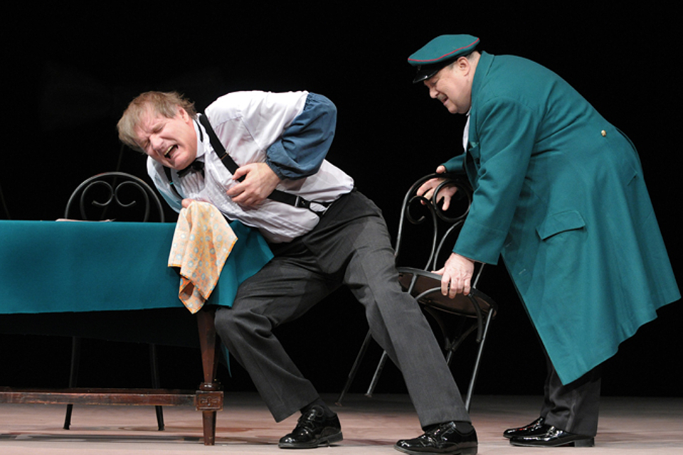 В постановке играют народный артист РСФСР Александр Калягин (он же выступил постановщиком) и народный артист России Владимир Симонов. Это не новая работа, впервые «Лица» сыграли в 1998 году. Собраны рассказы Чехова о жизни в русской провинции. Хлестко, колко, смешно и остроумно.