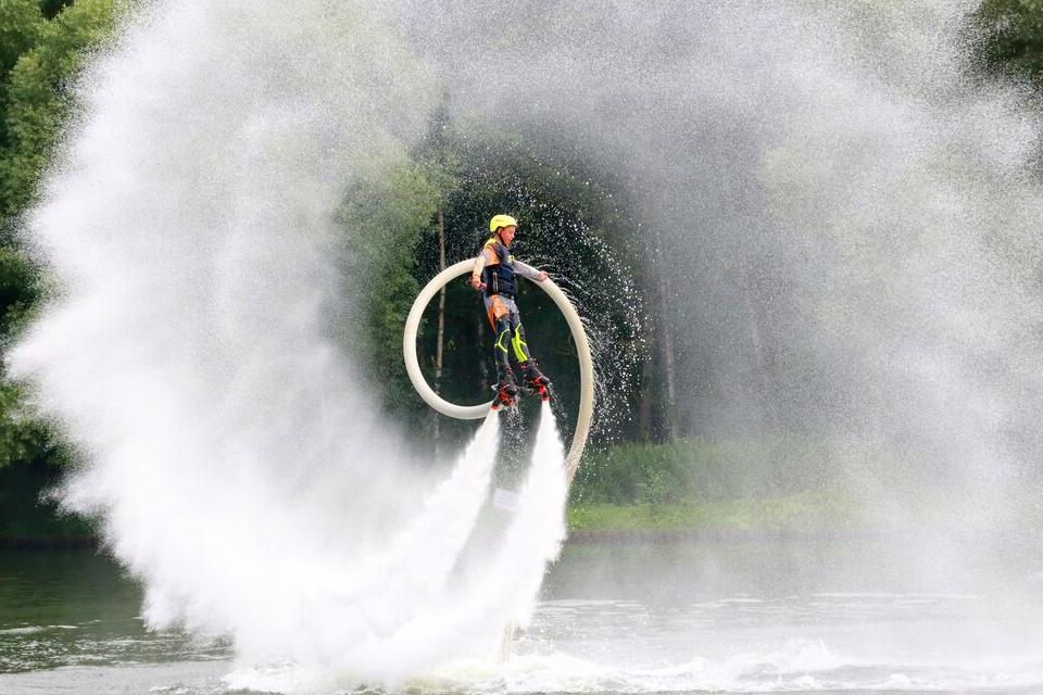 Гидрофлай — зрелищный экстремальный спорт. Атлеты встают на платформу, которая парит над водой, и проворачивают трюки. Перед гостями выступят 40 спортсменов со всего мира. Будут мастер-классы, костюмированные полеты и полеты в тандемах, а также вечерний концерт. Но сначала несколько часов будут идти соревнования.