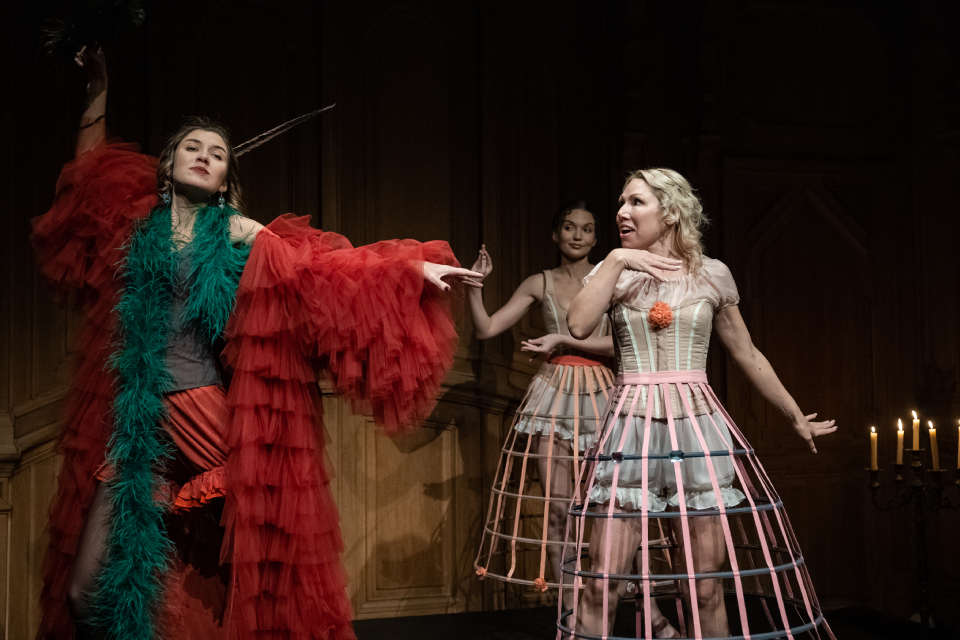 Постановка-эксперимент. Режисссер смиксовал иммерсивный театр (это там, где ломается четвертая стена между зрителем и актерами) и классическую драму. В первом действии предстоит прогуляться по залам роскошной старинной усадьбы Салтыковых-Чертковых. И наблюдать за закулисной жизнью дворянского домашнего театра 19 века. Причем подготовили четыре разных маршрута, на каждом происходит что-то свое. Вторая часть постановки проходит в традиционном театральном зале. Продолжительность всего действа 2 часа без антракта.