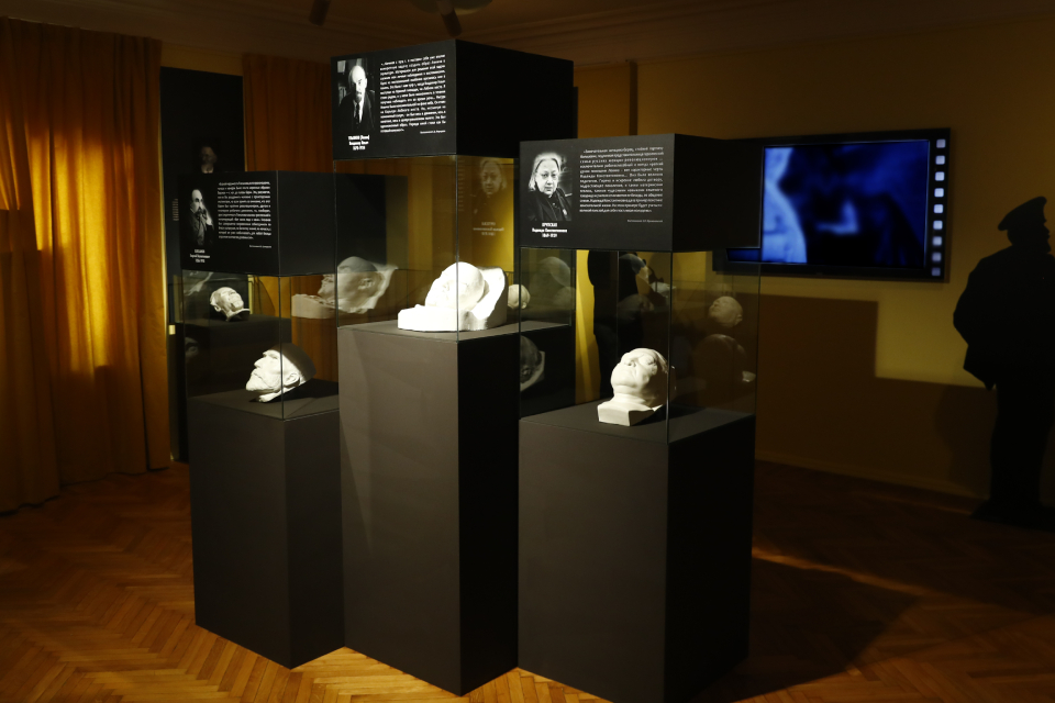 Собраны работы Сергея Меркурова – скульптора, который прославился масками Ленина, Троцкого, Дзержинского, Свердлова, Калинина, Фрунзе, Котовского, Кирова, Крупской, Плеханова, Сталина, Есенина и Маяковского. За всю свою жизнь он снял около 300 гипсовых копий с политических и культурных деятелей. Посмертный лик вождя мирового пролетариата, сделанная в Горках скульптором, стала образцом для сотен тысяч памятников, а подробности ее изготовления породили массу конспирологических теорий.